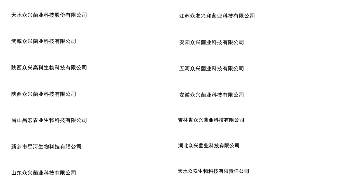 眾興菌業(yè)子公司、參股公司