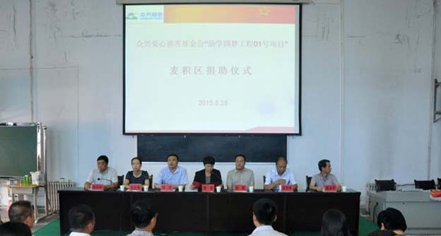 2015年8月28日,由眾興菌業(yè)時(shí)任董事長陶軍發(fā)起成立的“天水眾興愛心慈善基金會(huì)”,在天水市二中舉行了“助學(xué)圓夢(mèng)工程01號(hào)項(xiàng)目”首批資助款336000元的發(fā)放儀式。