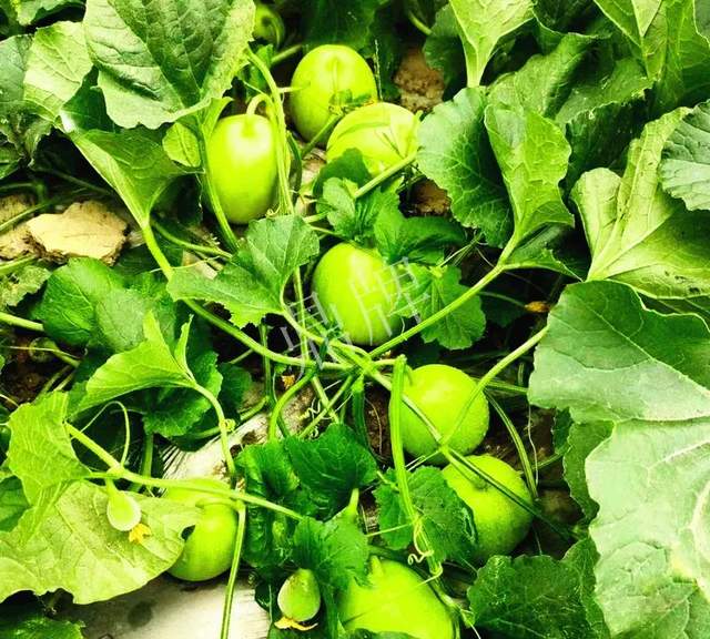 在坐果期遇上了雨天,我也沒有噴“氯吡脲”,以為今年的坐果不會好,雨停幾天后,到瓜地撥開葉片看了一看,嗨,坐的瓜一堆一堆的,當時點了點數(shù),多的1株坐果有13個,最少的1株也有6個,讓我很是驚喜!