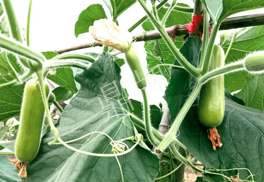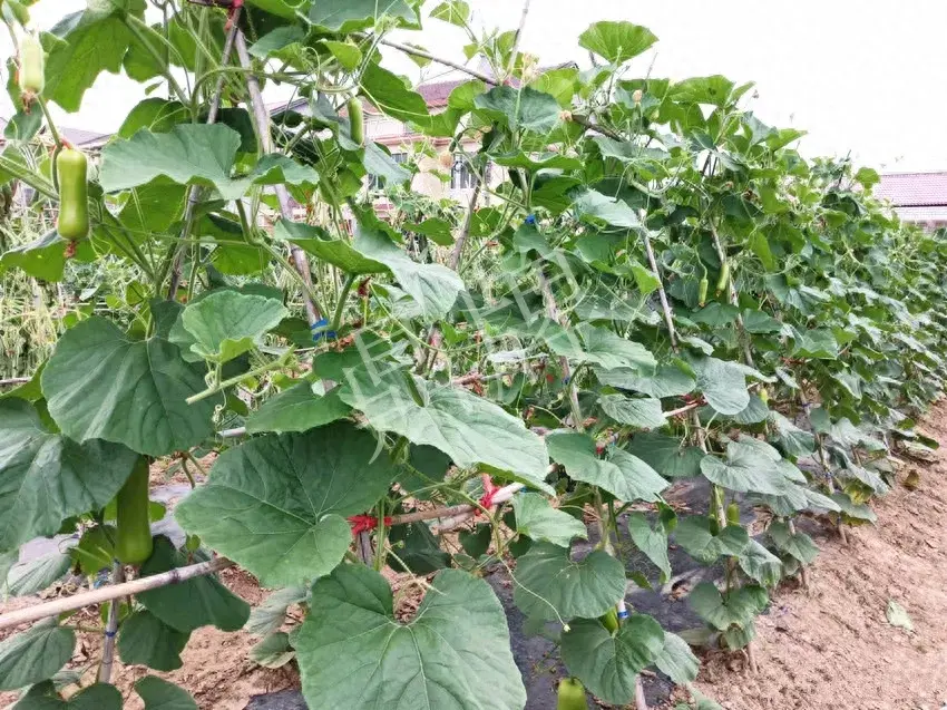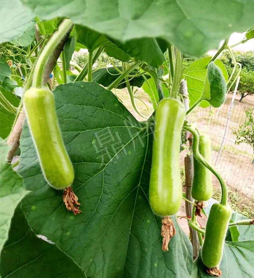 ▲ 2022年7月底,氣溫高達(dá)42度,其它瓠瓜的葉片出現(xiàn)了萎蔫。“露地傳奇”生長正常、坐果正常。