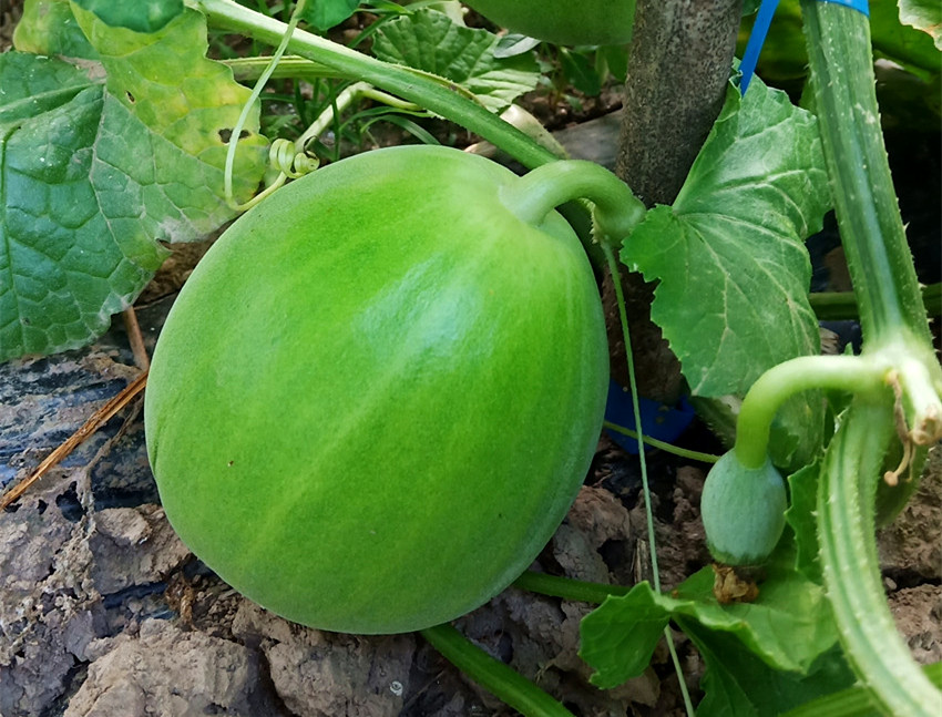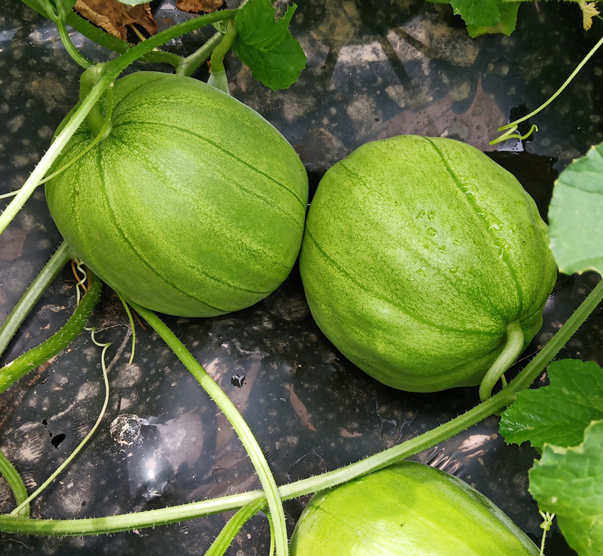 果大1.5公斤,以常規(guī)品種“丑八怪”為母本雜交而成,產(chǎn)量、品質(zhì)都有提高。皮韌肉脆,甜度高達(dá)18.5度。爬地1~2袋/畝、吊蔓5袋/畝。